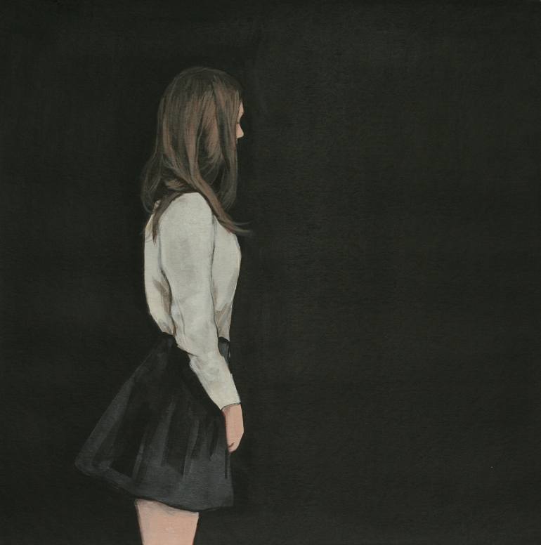 Lost in thoughts - I want to invite the viewers of my paintings to pause for a while and see how my figures simply let go for a moment and enjoy playful moments in life. Signed and dated on the back.