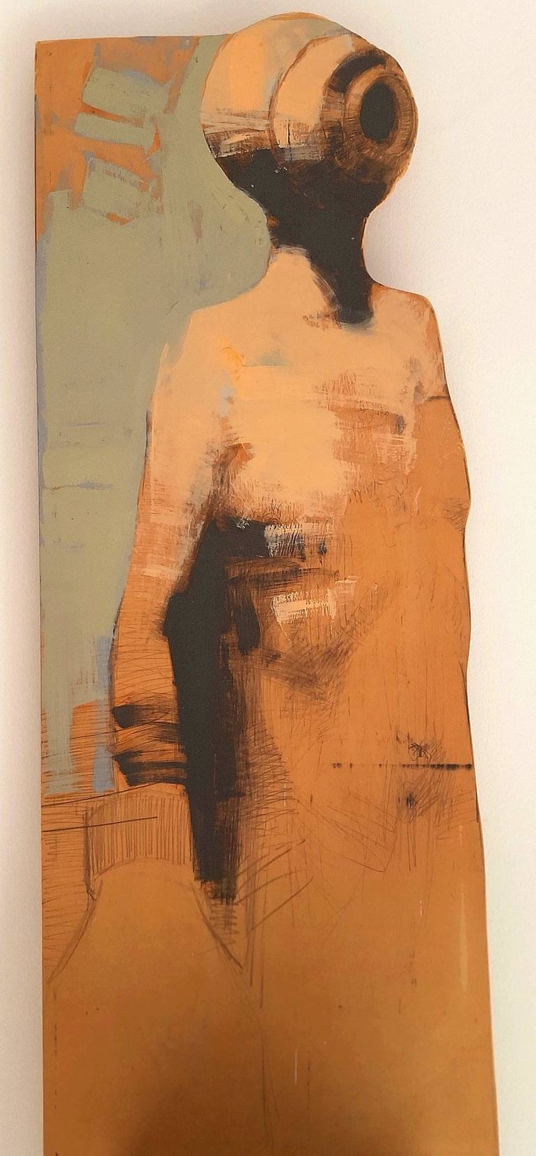 Third Pawn (il terzo pedone) 40 H x 15 W x 1 D inch. (104 x 40 cm ) Oil on modeled wood. Signed on back side Series 2019 This pating is part of a series of painting/drawing on molded wood, depicting the portrait of a Pawn in chess game; this series is part of my last artistic research over the Chess...