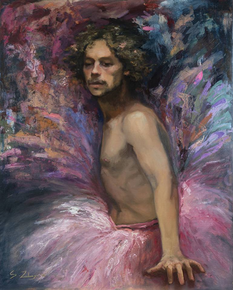 Oil on Belgian linen. This painting is part of the series IN CIRCUM MORBI, which finalized its last solo exhibition in October 2019. An attempt to disrupt the notion of masculinity and show that men who are effeminate are valid as well within the constructs of society.