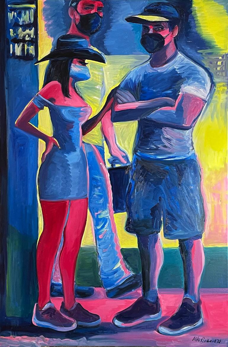 Mike Rimbaud, an American artist from New York City has a painting style that evokes Philip Guston, George Grosz and Alice Neel as well as influences from underground American comic book illustrators such as Robert Crumb. Mike has taught graphics at the School of Visual Arts in New York City and is also a rock songwriter who has released nine albums of his original songs. As a native New Yorker and long time resident, the city has inspired much of his artwork including a series of Lower East Side portraits and subway scenes. Other subject mater includes rock musicians, dinosaurs, burlesque and belly dancers. “I have always enjoyed painting people, sometimes my work borders on caricature and cartoons. Songwriting and music is a way to express myself with words and sound, while painting allows my to visualize my feelings and visions in ways that music can’t. It’s the difference between the ears and the eyes.” Excerpt of an interview published in The Villager (New York City weekly paper) "Lower East Sides Renaissance man" By Ernest Barteldes, The Villager There's no shortage of characters in New York, says portraitist Michael Rimbaud. In fact, there's a surplus including Phyllis Sanfiorenzo, above, an actress Rimbaud met on Rivington Street. A keen observer of the comings and goings of his neighborhood, Lower East Side artist and musician Michael Rimbaud has spent the past few years painting portraits of every local resident that catches his eye the butcher, the baker and even the undertaker, says Rimbaud. In the past year alone, he’s painted 50 portraits of personal friends and people hes approached on the street. Many are on view now through February at The Theater for The New City Gallery (155 1st Ave. at 9th street). We spoke to Rimbaud about his exhibit, Lower East Side Portraits, and what it takes to be a Renaissance man. You're a musician, painter and graphic designer. How do you see yourself as an artist in general? I am an artist with many interests, primarily painting and rock music.Graphic design helps pay the rent and I teach computer graphics, too. Leonardo DaVinci was the real Renaissance man. He wasn’t only a great painter and sculptor, he invented flying machines and submarines, weapons of small destruction and he also dissected humans. Your show at TNC how would you describe it? With Lower East Side Portraits I want to show the variety of people that live in this culturally rich neighborhood.