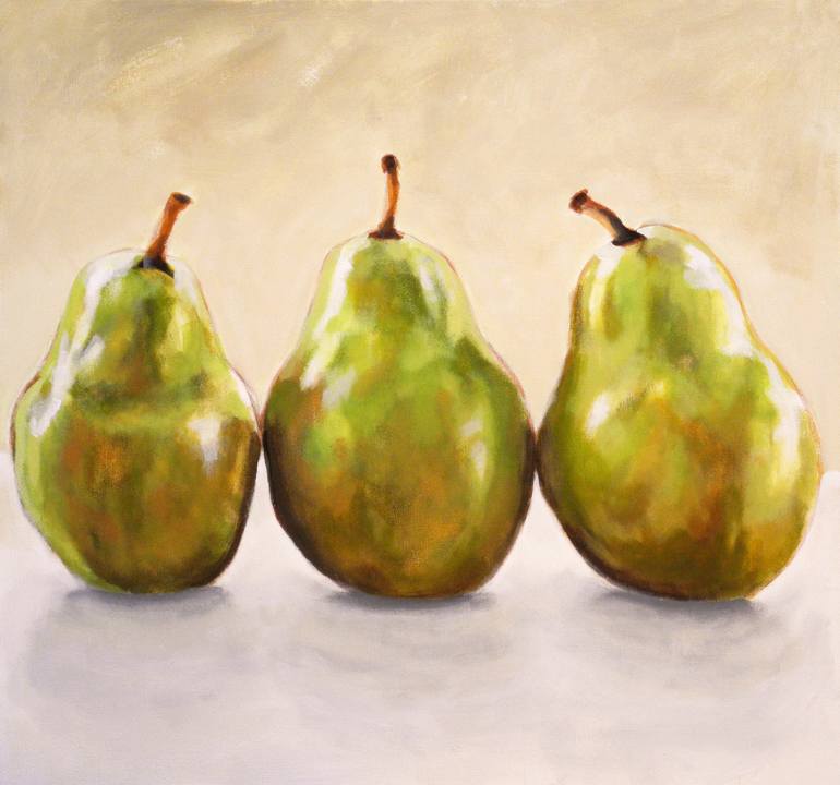 One of a long series of paintings that I have done using pears. I like using the shape for the way it catches the light. I've rendered many sets of three pears using a harmonious, if not realistic, palette. This group is rendered realistically though I have enhanced the color and tried for a harm...