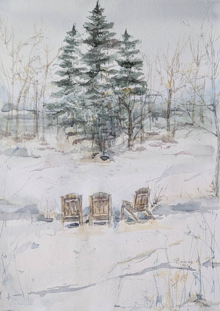 The artwork is currently part of an exhibition. It will be available for purchase starting April 6th! This is another painting from the "Winter Walk" series. It's about the importance of pausing, taking a deep breath, and experiencing a moment of recovery after turbulent times, even if those time...