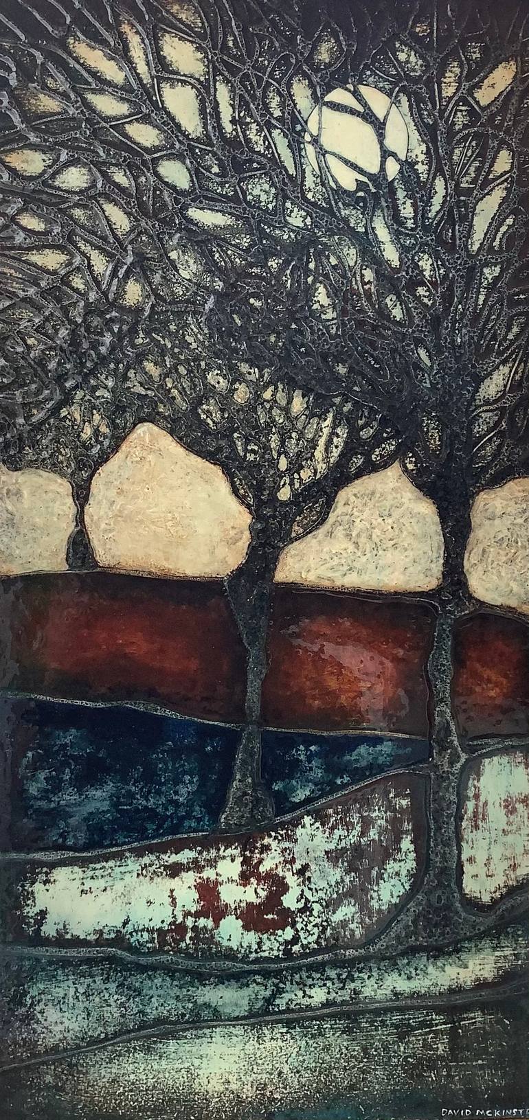 Original mixed media artwork. Ready to hang. W12, H24, D 0.5. Hand crafted modern landscape inspired by the beauty of winters trees.