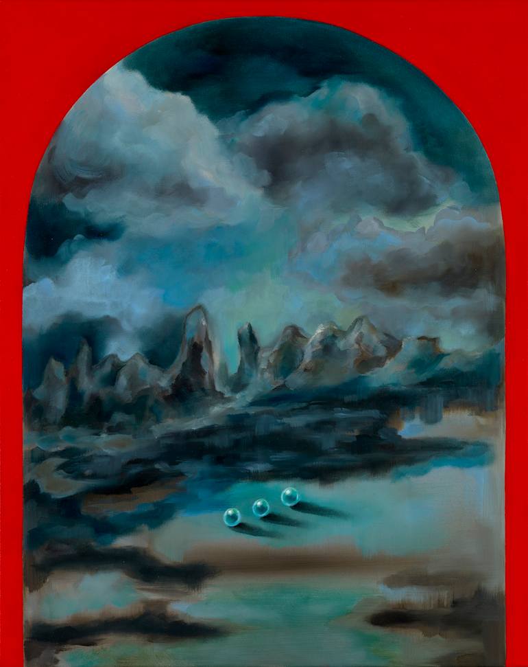 ‘Three pearls’ 2022, Oil on canvas, 40 x 50 cm As we are quite familiar with what Freud defined the human psyche to three parts; the id, ego, superego -conscious & unconscious mind- and I was wondering what if they are all aligned together looking in the same direction, what happens then?