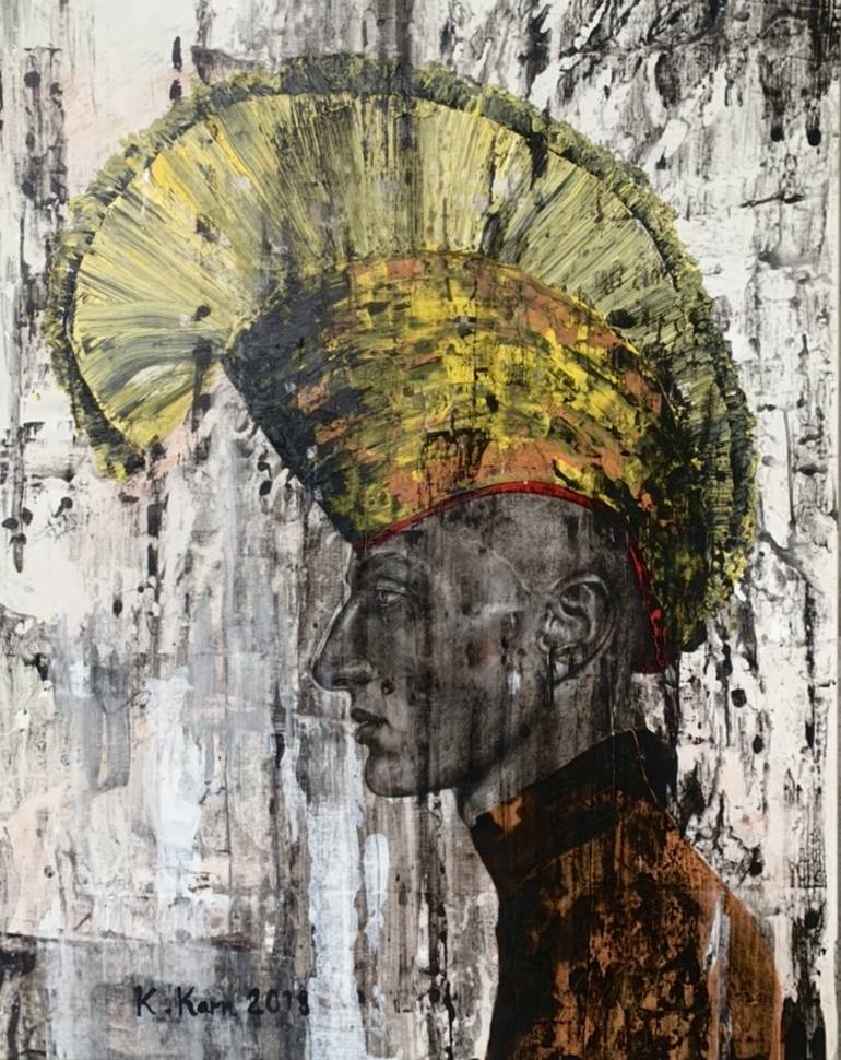 Destruction series. This painting is about 2 different cultures between Tibetan monk and Punk that shared the similarity in appearance but totally in different mind. I want to keep the feeling of the painting in grey area and leave the viewer to desire whatever they feel with the object and textures...