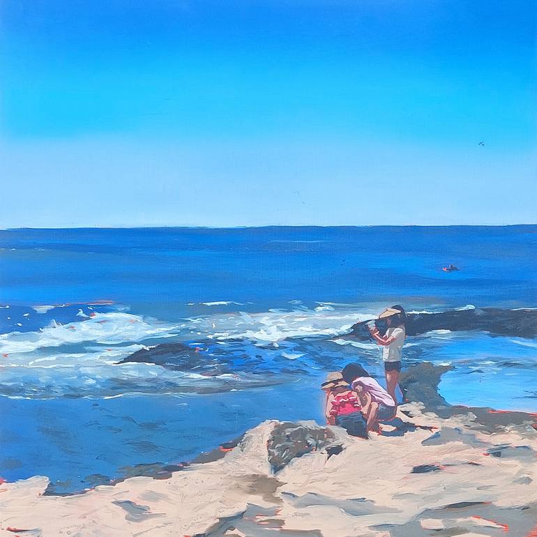 Introducing Tide Pool Discovery at Davenport Landing, an original oil painting by Jacob laCour. This captivating 12" x 12" work of art beautifully captures the serenity and curiosity of childhood moments at the beach. Set against the iconic landscape of Davenport Landing Beach, three young children ...
