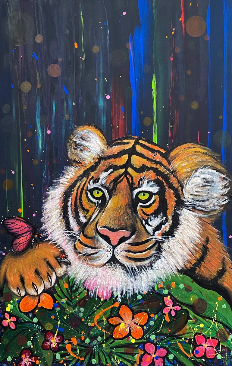 This piece is created on canvas, using acrylics. It is difficult to see in a photograph. But the background of the painting is highly layered and textured yet flat in comparison the the main subject which draws the eye to focus on the subject. I like to create paintings that come alive and this pi...