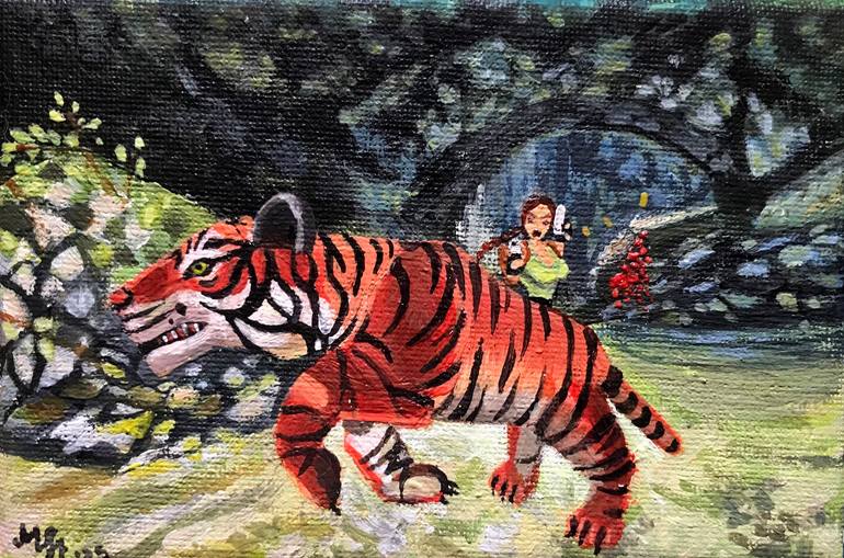 Tiger Beside being a traditional painter, I am also a full time video game developer, a 2D artist. Tomb Raider was, and still is my favourite video game of all time, Lara Croft is my icon! So I decided to make a small sized painting series to pay my respect and immortalize my favourite moments of t...