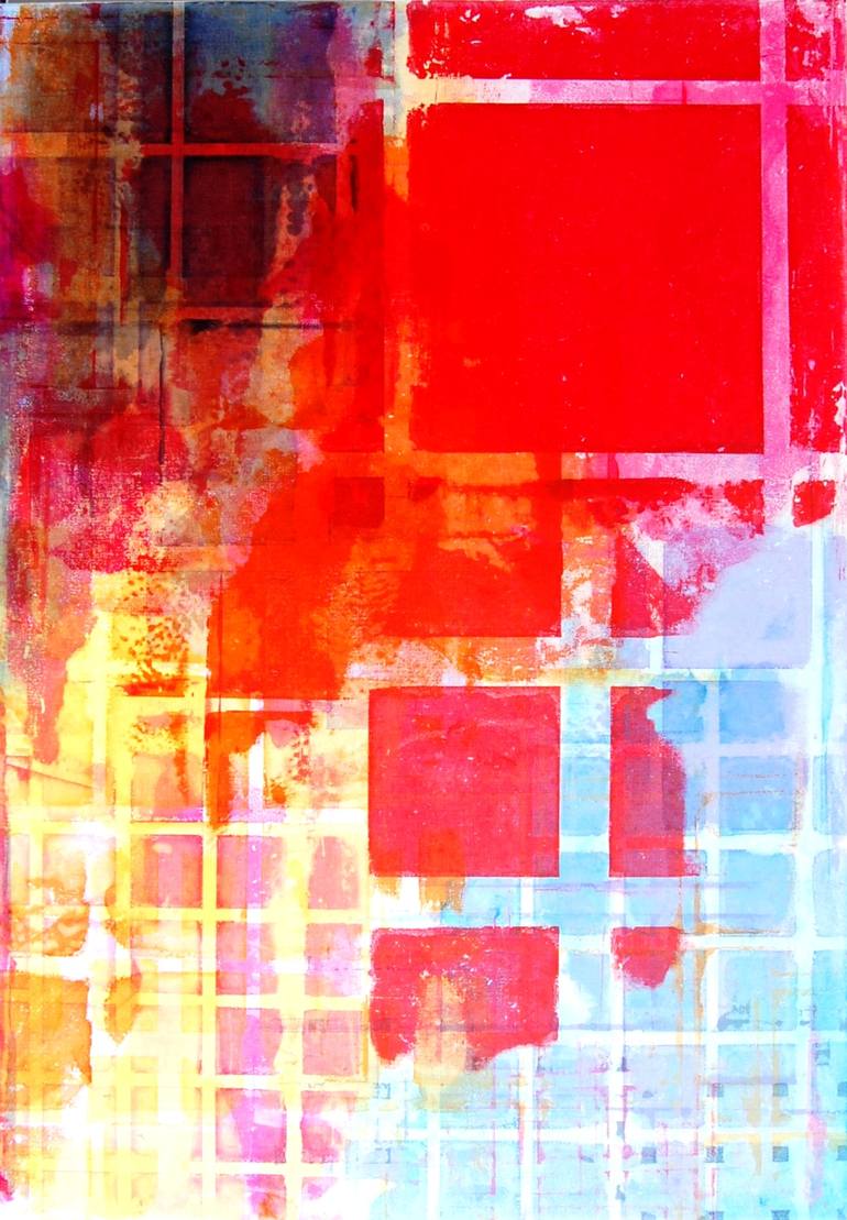 Another piece inspired by tiles and grids using layered transparent colours.