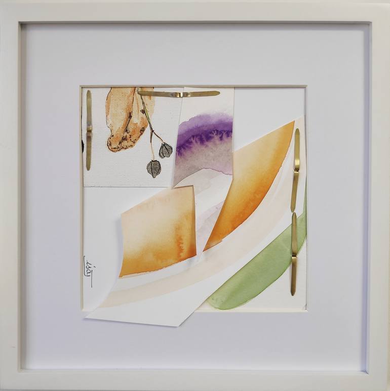 Assembling of geometrical pieces of paper paint in watercolor. Mix of abstraction and pattern of a lime leaf. These leaves were harvested in my garden at fall. Hundreds of leaves lied on the ground. I found them so nice I decided to paint them. They are here hardly recognizable, yet they were the st...
