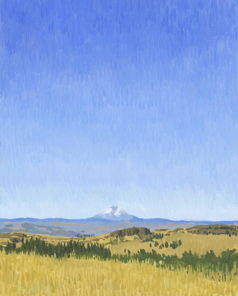 Painted en plein air in the Columbia River Gorge, a place that is old and huge and beautiful. This piece was created using excellent quality oil pigments on archival linen mounted on wooden panel. It has been framed with a slim maple frame, custom made by a fine furniture craftsman.