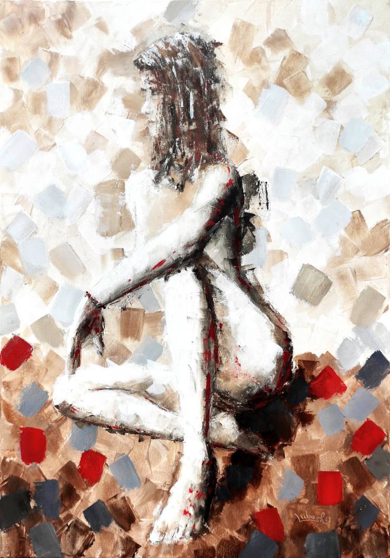 Original artistic nude, acrylic on a stretched canvas. Painted by an artistic palette knife. The work is also painted on the sides and has a handle on the back, so there is no need to frame it. The image is secured by a certificate of authenticity (included), contains the signature in the front, low...