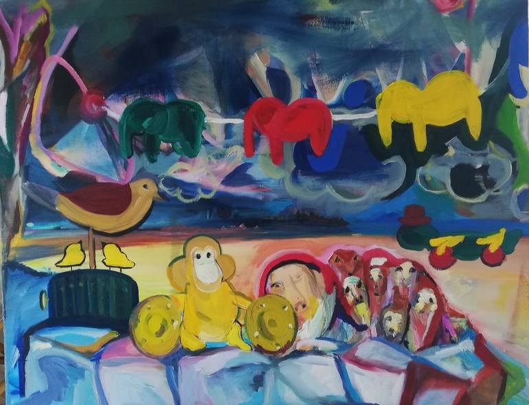 Imagination color and fun with a touch of fear in life, toys and animals a little of popart put on canvas with oil paint, as it was part of a story of life and where the story never ends.