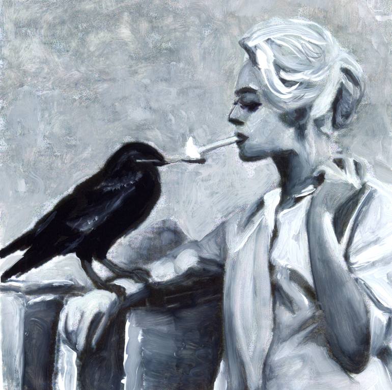 During the pandemic I started creating Icon paintings for the Artist Support Pledge. They are all paintings of people that have inspired me. They are painted on Yupo paper and mounted on wood panel. This painting is of Tippi Hedren in a promotion for Alfred Hitchcock's The Birds