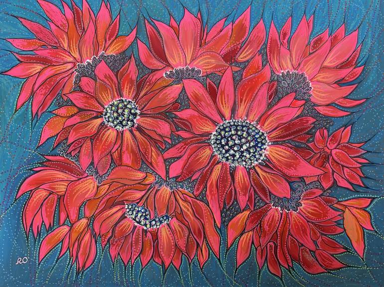 Original painting "To the one I love…” Size: Height 18 x Width 24, Depth 0.6, Inches. Materials:Acrylic on canvas, acrylic pens. Subject: Flowers. Style: Impressionism, Contemporary, Modern, Decorative.