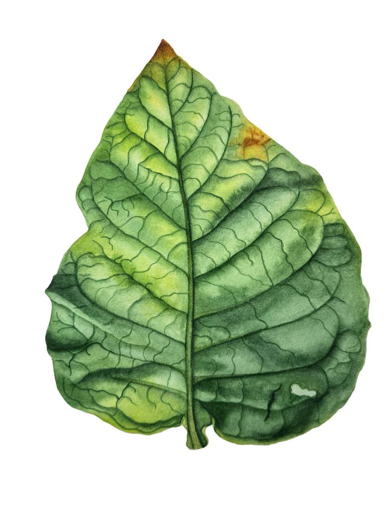 Tobacco Leaf. Watercolor on 100% hot pressed cotton paper. Tobacco leaves are very beautiful for painting due to its ability to change their vibrant colors while in a drying process. I wanted to capture all the beautiful colors and the leaf lines, as well as the death and the texture of the subje...
