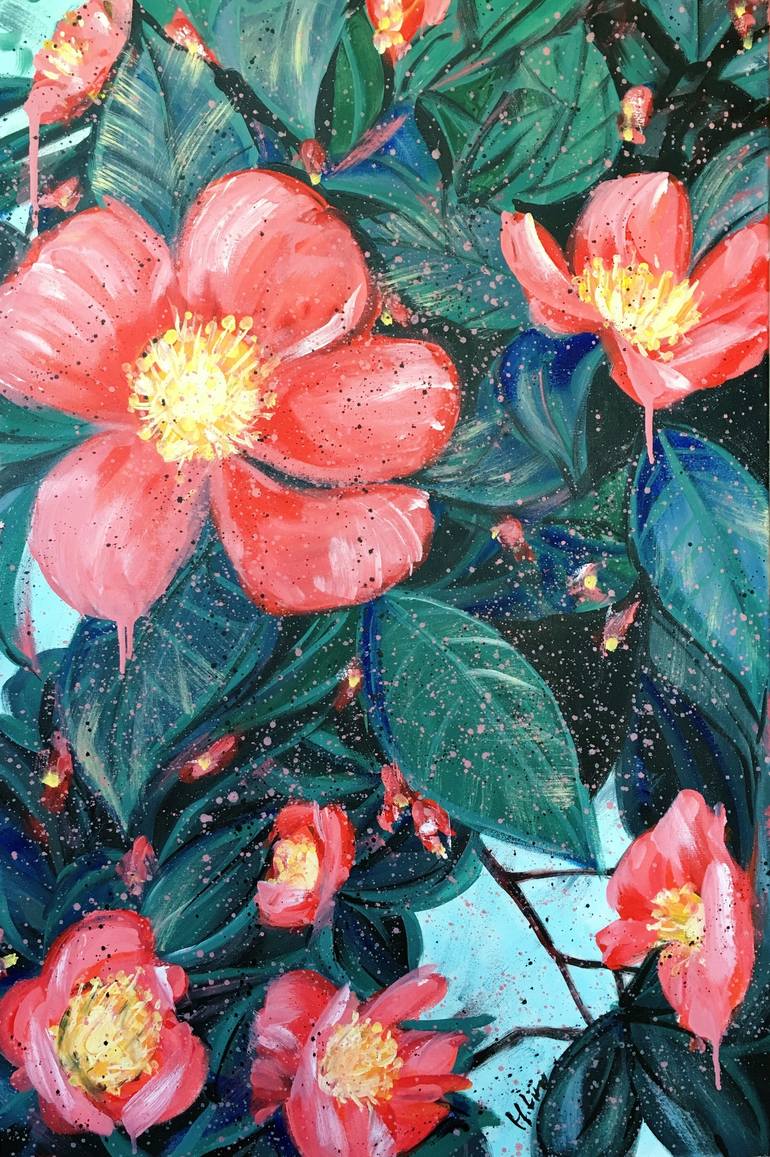 Together Is A Beautiful Place To Be - Yuletide Camellia By Hsin Lin 7/7/2019 91.4 x 60.9 x 1.5 cm Artist Acrylic on Acid free pine frame triple coated canvas ,ready to hang with D-rings and wire attached at the back. Side panel painted: Black. Affirmation: Do not fear or doubt the new path ahe...