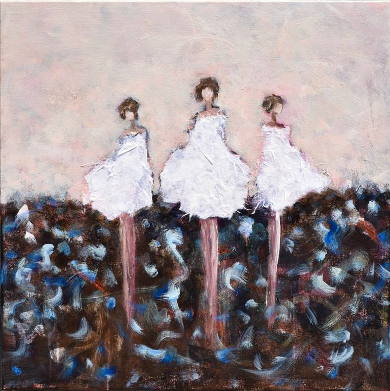 "Together We " ... can do anything A magical piece about the joy of having that special close bond of sisterhood... How it makes us stronger and happier when we are together :) Lot's of subtle texture as the dresses are collaged from Japanese rice paper. A piece made for story telling that's al...