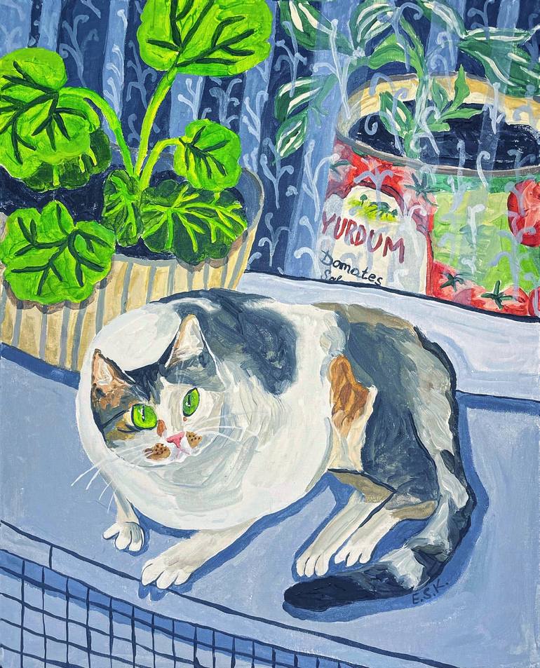 I like to connect stray cats with settings I find nearby. For this one I first spotted the curious cat, then I saw a plant growing in a tomato paste tin and liked its vividness. Both images connected themselves in my head.