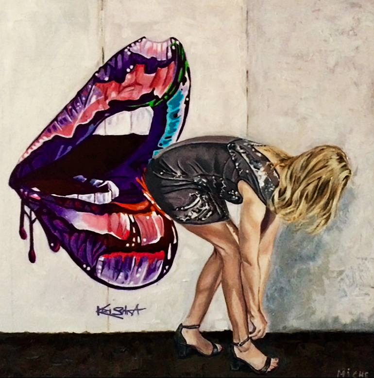 I am a narrative figurative artist, using street art as a background to my art. I obtain the street artist's permission before I incorporate their work into my composition and tag them in to my Instagram feeds to give them added exposure. I place a woman in the foreground performing an action which changes the dynamic of the 2d street art, bringing art to life and vice versa. I paint in oils. The viewer can make up his or her own mind as to what is happening in the painting. I get some interesting feedback as a result.