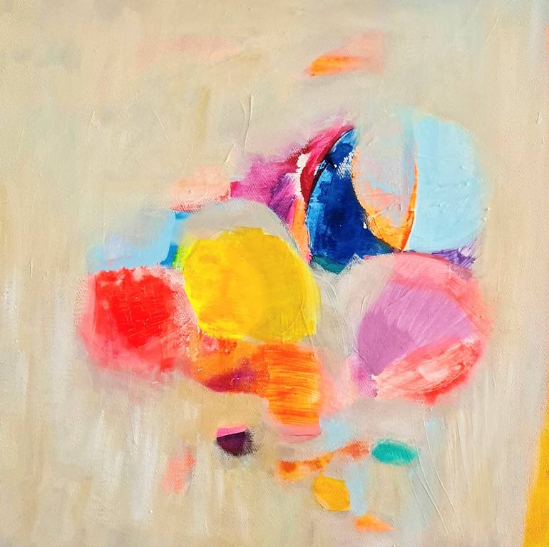 Happy, colorful original painting on canvas 40x40x4cm , Painted in 2023 in Switzerland. Finished with a protective UV varnish. Worldwide Shipping.