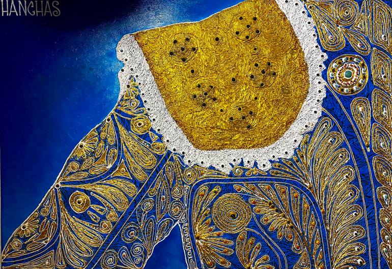 Original work by Yul Hanchas inspired by Spanish traditional torero costume. Original volumetric technique, incrusted by natural stones.