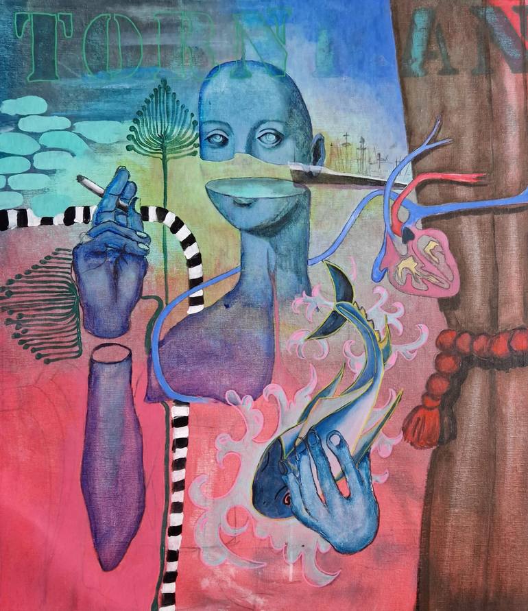 I paint people because man is an inexhaustible source of inspiration for me. In the beginning, I was mainly concerned with the resemblance, now it is a challenge to give a portrait content. I like to leave large parts of the canvas free or not filled in because I really love an unfinished, not perfect image. And I also like to be able to fill in things myself. I like working with acrylics. Acrylic fits very well with my method. Fast smooth painted wet layers. Sometimes the canvas lies on the ground and sometimes I put it back on the wall. The charcoal drawings / lines have started to play an ever greater role. It was first a way to quickly set up the portrait, now the lines are an important part of the final result. I recently also incorporated collages through my portraits.