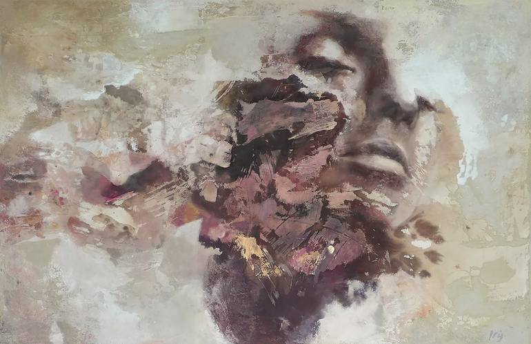 The essence of her work For Iris, every painting begins with a quest. Each piece must hold something unique — a feeling that stands apart from the very first moment. She often starts over, even after working on a painting for weeks. “Through trial and error, I’ve learned not to keep adjusting once the feeling is gone. Yet those are always difficult moments — that breaking point when a painting risks losing its soul.” Her aim is both simple and demanding: every work must be her best. She works slowly and with full concentration, without sketches or test pieces; each painting is the experiment. This makes her less productive, but every piece becomes a unique result of a process that can only unfold in her studio. Perfect imperfections Iris follows no trends or movements. Her work grows from a personal exploration of emotion, material, and layering. The structure of her elegant female figures lies hidden within layers of stains and textures. These “perfect imperfections” form the foundation of her portraits and emphasize the beauty of humanity — unique, fragile, and extraordinary. For Iris, a work is only complete when abstract and realistic forms connect and enhance one another. ________________________________________ Materials and rust Iris carefully selects only the finest materials: pigments, inks, (precious) metals, and aluminum panels. She experiments with metal particles and acids, triggering oxidation processes such as rust. Each material requires its own approach and fuels her ongoing artistic evolution. She also creates her own medium and reuses old paint residues to build new textures. Each work thus literally carries the layers of its creation within itself. ________________________________________ About Iris Raised in the forested village of Groesbeek, Iris discovered her fascination with form, color, and material at an early age. Influenced by her deaf father, with whom she often undertook building projects, she developed a keen eye for detail and craftsmanship. After Art School in ’s-Hertogenbosch, she spent several years working in the corporate world, but since 2007 she has devoted herself entirely to her art. Driven by constant curiosity, she continues to seek new ways to refine and deepen her work. “Open your eyes and dream.” Her paintings are part of various private collections in the Netherlands and abroad.