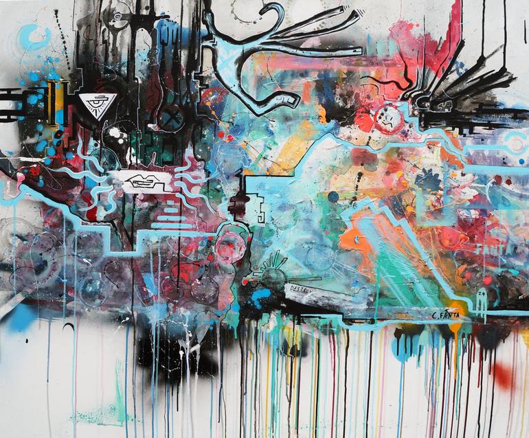 Am I a body or do I have a body? With eye-catching colours and different techniques of painting Captain Fanta creates expressive works. His abstract portraits allow most diverse emotions, while the eye of the contemplator is jumping from one edge to another. One time they are silent observers, the other time they tell you a story of their own world. You can find critical, philosophic trains of thoughts in his paintings and sculptures. For his art shall not just be decorative, but kick you and get your thoughts rolling.