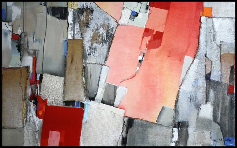 Abstract painting, elaborated on shades of gray and prevalence of red geometric figures. Developed starting from pure red shades, adding fabrics and palette knife color. The mix of grays transports the observer into a balanced world and then surprises him with pleasant shades of red. Cotton canvas, ...