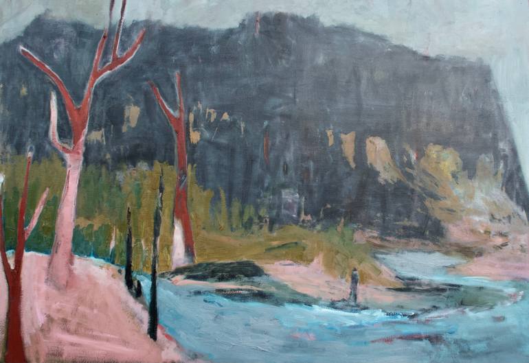 A black mountain looms in the background over a forest landscape. In the foreground several dead trees and scraggly red ones populate the foreground. A river twists through the scene and a barely perceptible figure stands by the shoreline. I have always enjoyed the Romantic era (at the end of the 1...