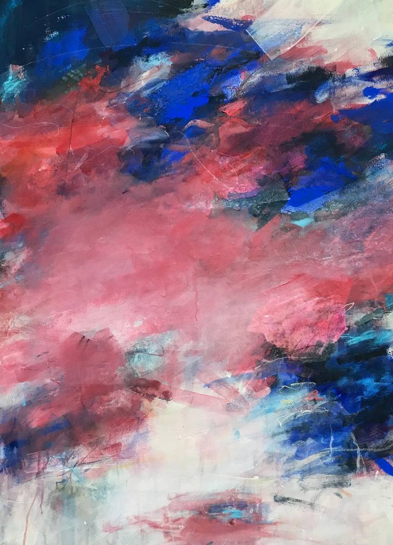 This beautifully vibrant painting has been built over many layers of paint, the starting point being the colour combination of the luminous ultramarine and theatrical rose red. I enjoyed bold brush strokes and more detailed mark making in this piece. I mixed my own paint of ultramarine and rose usi...