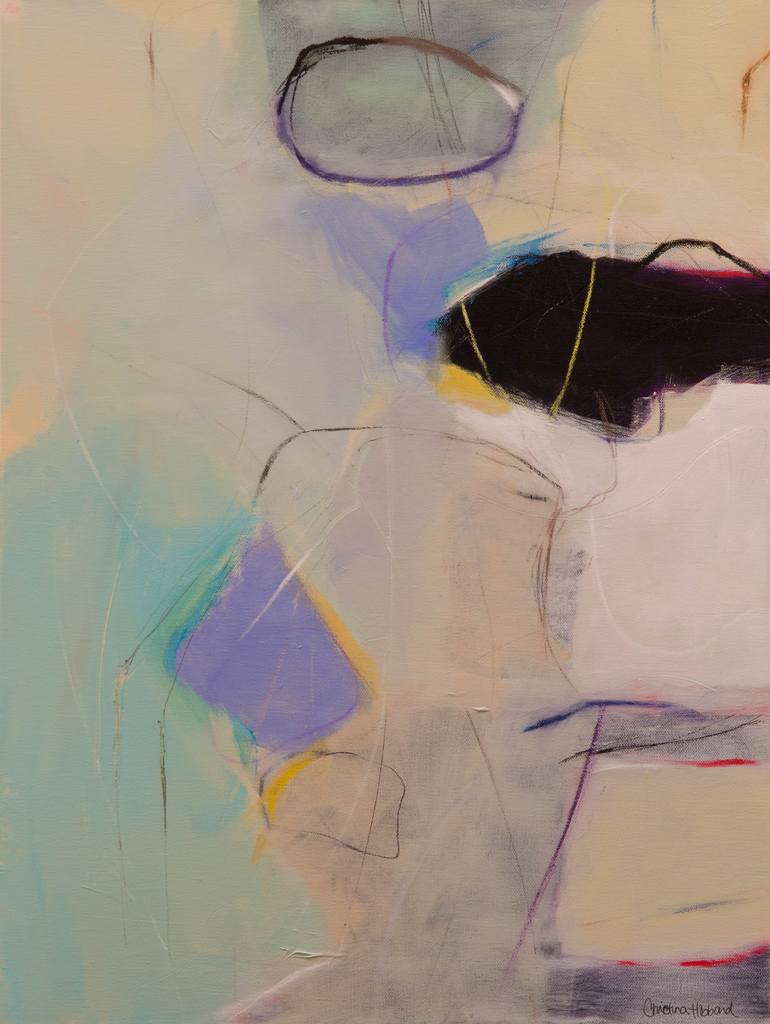 I approach most of my paintings intuitively, meaning, I don’t have an end goal in mind. I layer my canvas or paper with acrylic paints, collage (papers, acrylic skins), inks, charcoal, colored pencils, and crayon (watercolor, oil pastel, wax). I do this until I see something I like (a color or line)...