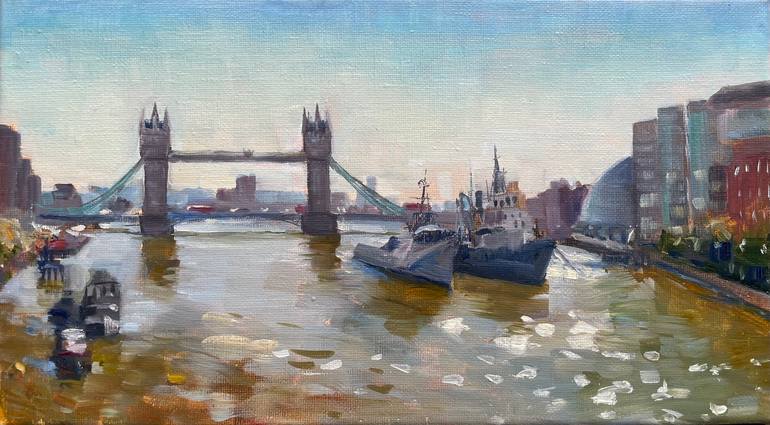 Inspired by the morning reflections of the iconic scene on the Thames. Painted plein air or on location to capture the mood and light of the morning in London.