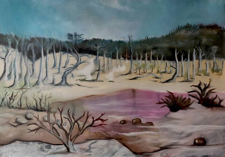 Image inspired by the location of the post-apocalyptic computer game from the MMORPG species "Fallout 76". I decided that it could be a metaphor for the emotional state accompanying being in a social environment favorable to broadly understood development. This is an oil painting from 2019, in which...