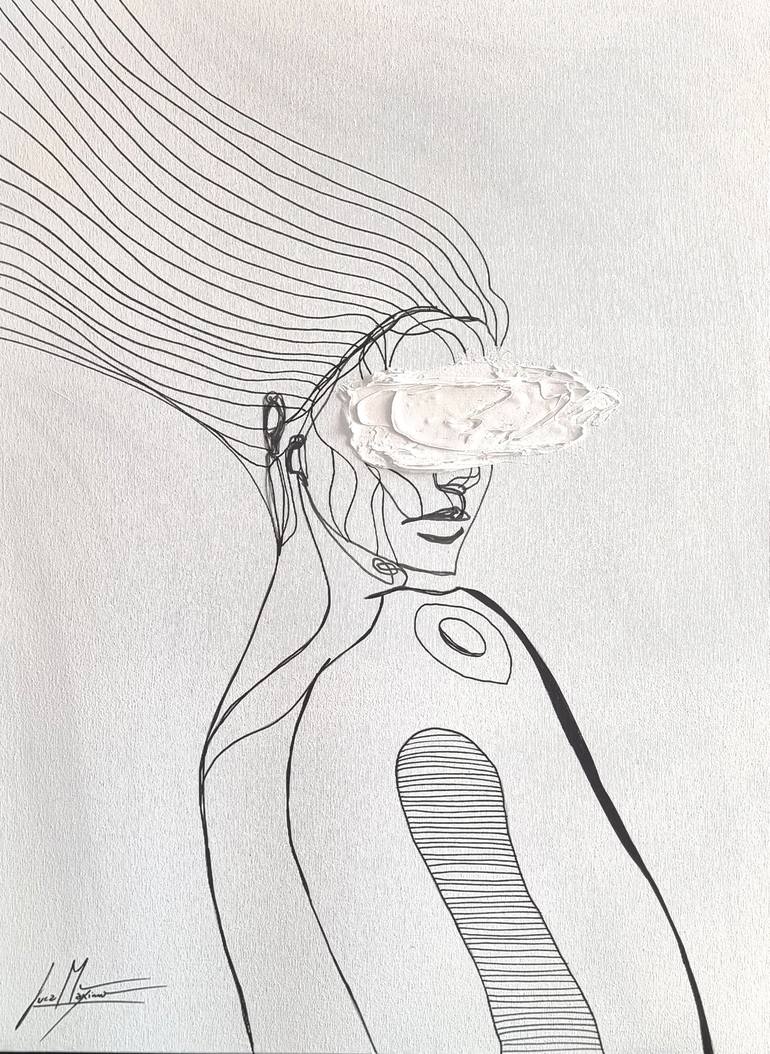 Limited Edition 1/9 from the “Traces” series by Brazilian artist Juca Maximo. In Traces X, the female figure turns inward, her gaze obscured by a textured impasto veil. Flowing lines trace her form, while a hollow on the chest suggests not emptiness, but intensity contained within. Her hair extends...