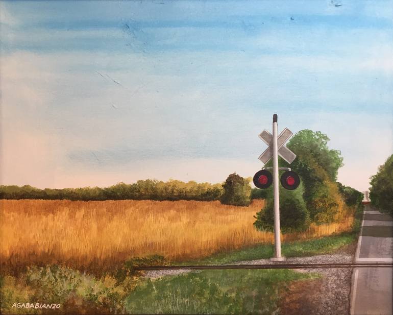 I really liked the difference of a fall field and a railroad track going through it. I think the views will find the painting somewhat calming. I really like acrylics. I find the medium easy to work with, and I'm not crazy about the smell of oils.