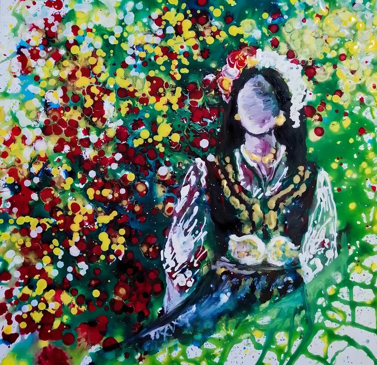 Traditional Bulgarian Woman in Colorful Nature Painting