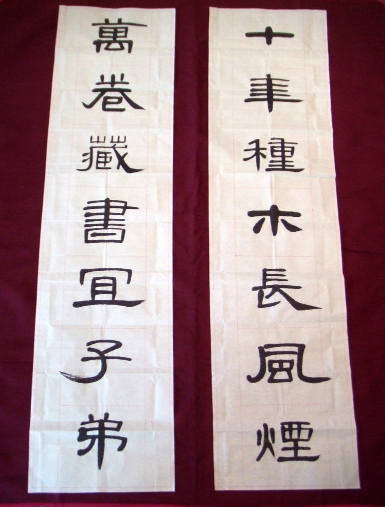 Truly exceptional, original works of traditional Chinese calligraphy The artist has never been known and would like to remain the same. All his life has devoted to the traditional Chinese calligraphy and his works might be able to occupy a seat in the 500-year history, particularly the Li style and the Zhuan style. In fact, he has his own style already as shown in the works.
