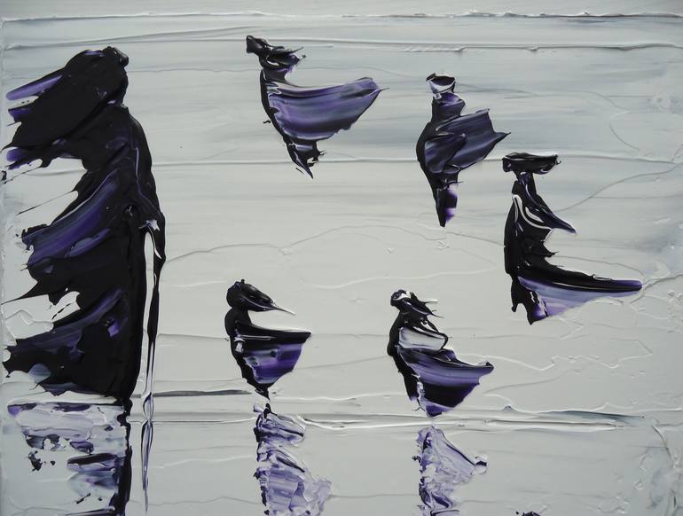 Painting by Anon one of Kim Noble's personalities. Anon pours the paint onto the canvas, with limited use of a pallet knife, the paint flows leaving it fresh, clean, thick and pure.