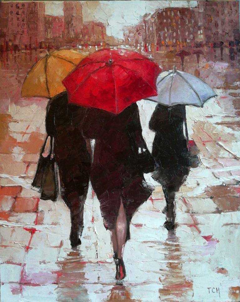 "Tre sorelle" - oil on canvas board, 40x50cm, impressionism, knife.