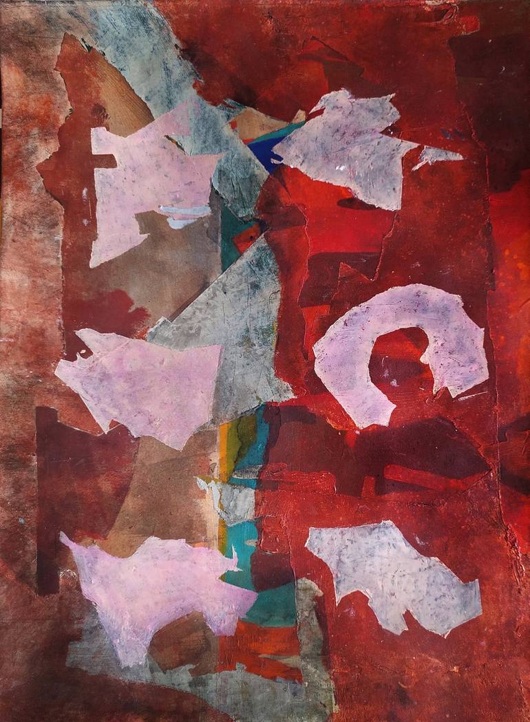 Beginning with a love of earthen tones from the rust on iron facades and the chipping of old paint to the various shades of pink that now dominate my work, this series in red has been the most important. All these years my abstractions started from earthen tones, to blue series and travelled through many colours. I have worked extensively with pastels and acrylics. This particular series in red was created due to my attraction to it's bold and dangerous quality, the implication of fear it invokes and the fearlessness with which it does it. For me, the work has ties to the terracotta that I saw in the fields in my home that would shed into my hands if I touched it and the flower pots in my home as a child that were as big as I was. Strong memories of my childhood and past reflect in my series. I have worked on this series almost exclusively on paper, rough textured paper to remind myself of how I felt when I gently grazed the red flower pots