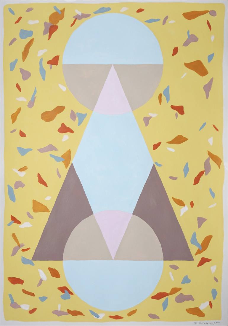 "Triangular Architecture" is a hand-painted acrylic painting on high-quality 300g paper by artist Ryan Rivadeneyra. These painting, influenced by modernist artists of the 50's, 60's, and 70's, explore abstract geometric shapes and overlapping transparencies to create simple and elegant compositions...