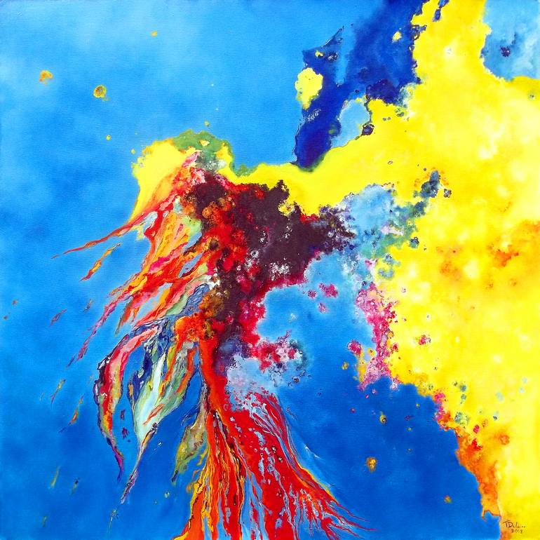Theophile DELAINE is born in 1969 in Champagne. From his earliest childhood, his parents drove him around in Volkswagen minibus ; Greece, northern Africa, Afghanistan and Nepal, which marked him with a permanent desire for escape and freedom. At the age of 19, he went to Paris to study music at the University of Paris VIII and the conservatory. He already liked to draw but he discovered then the world of plastic arts and contemporary art of the capital. He then started to follow the curriculum Arts Plastiques at the university, visiting museums of Europe and elsewhere, galleries, exhibitions, sculpture on earth, on wood, collages, watercolor, chalk and many other supports. He will make many very enriching encounters. During all these years of learning, he nevertheless remained faithful to his double bass, following a classical formation and playing in jazz clubs. He will gradually end up abandoning music for brushes. At 23, he finally embarks on painting, working on technique, composition, harmony of colors ... At 26 he leaves to live in Crete where he enjoys drawing portraits of the mountaineers in the Kafénion. Throughout this time, he seeks to graphically express the need for freedom that characterizes him. Although he appreciates the expressiveness of Paul Rebeyrolles and the great sensitivity of Van Gogh, Zao Wou Ki's painting will ultimately be revealing. From there, at about 28 years, the pictorial adventure really begins. At 30 years old, he settles in Limousin, sets up a small workshop and paints - a lot, non-stop! He begins to sell paintings, takes up plastic art studies to perfect his theoretical knowledge and organizes his first solo exhibition. But it is not enough to paint to feel free, we must live it to paint it. Then, in 2004, he leaves again and expatriates to Madagascar where, for several years, his painting will flourish. He exposes very regularly in various places on the big island. At the age of 46, he leaves Madagascar for La Réunion where he exposes his pictorial reflections since the beginning of 2016