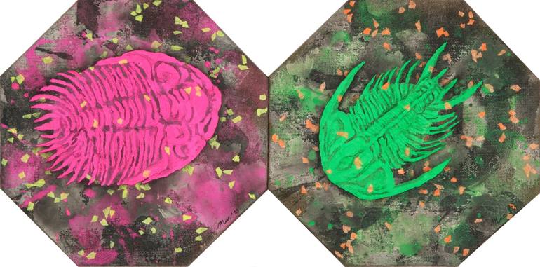 Diptych, two distinct elements ( 41 x 41 cm.). Octagonal frame, stretched on the frame, ready to hang.