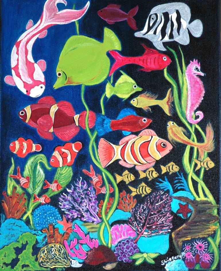 This Aquatic Delight of Spectrum of Colors in these Beautiful Tropical Koi with other Fish! If you can't have a Live Fish Aquarium, this is a great alternative and fits on your wall!