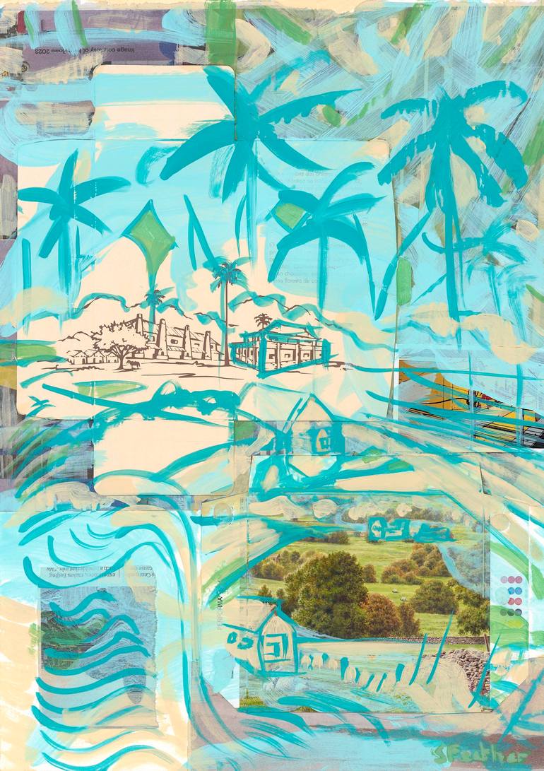I made this landscape mash-up to juxtapose two rural scenes and to experiment with lines and forms over a collage which includes packaging and stylised illustrations of rural Brazil and England. Taking key motifs and colour combinations I wanted to expand these into a painting with gestural marks an...