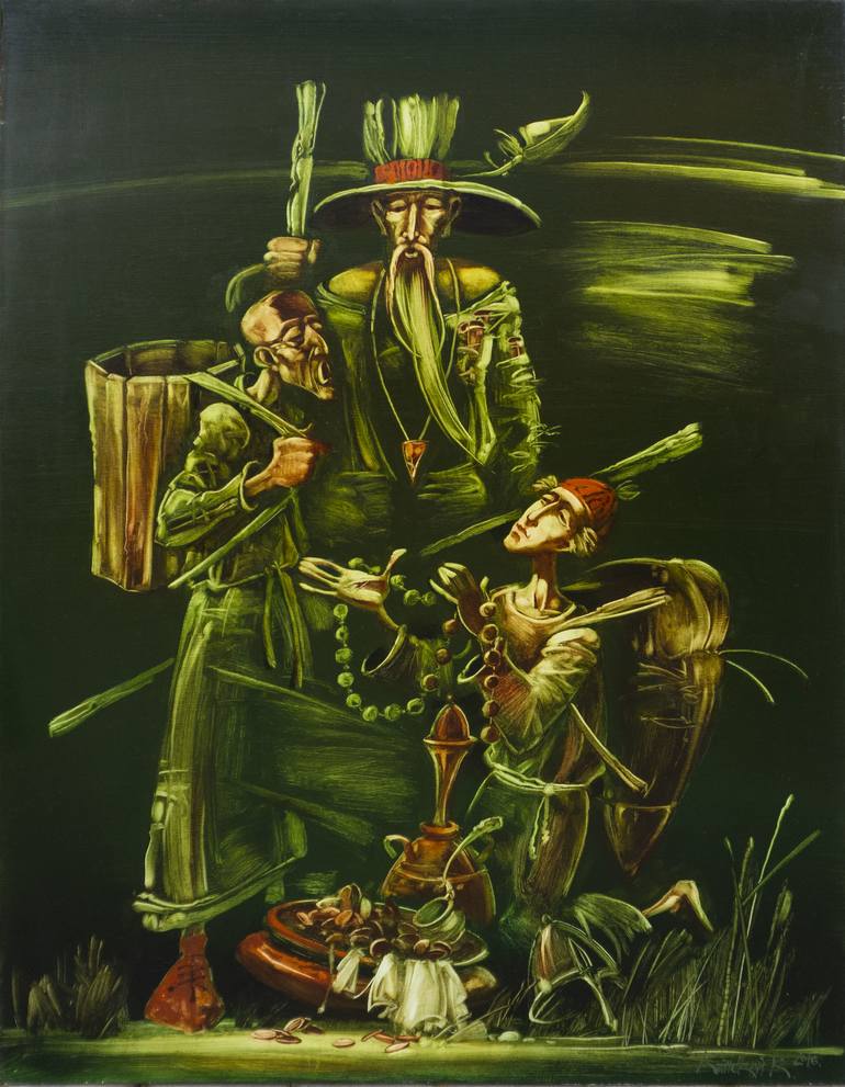 Konstantin Kansky was born in 1968, graduated from the Krasnodar art school. His work is a plastic equivalent of the fantasy genre in literature. Fantastic and real intertwine, forms a world drawn into the mythological past. Images take on a kind of plastic metaphor. Work carnival Kahn and phatasmagoria. They felt grotesque and easy gentle dubbed. The artist's paintings are subject to the logic of parable, allegory. They call for a fabulous world of illusions. In painting, he relies on the technology of " old masters»