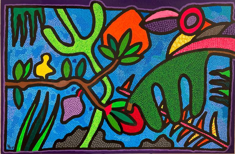 I was born in 1984 in Toulouse (France) where I grew up and studied. Inspired by primitive art, I really started painting around 2006. The work of artists such as Keith Haring, Robert Combas, Van Gogh, Gaughin and Edward Hopper also influenced me over the years. I love color, life and freedom and my art is a reflexion of my soul. I hope you will enjoy looking at what I did as much as I enjoyed creating it...