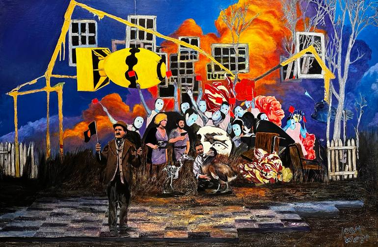 Many of the ideas in my work exist at the intersections between what we are told about the world around us, what we would like to believe about it, and the true nature of reality (which no one really knows). While there are many reasons I chose to be a painter, central is my desire for understanding and to resist the very human urge tell ourselves and others what we want to hear rather than what is true. Truth is elusive and rarely as tidy as we would like to make it. Stories have always been a huge part of how human beings process reality. In my paintings, ideas about the future, stories from history, and sometimes even from my own life clash with current events and are represented with a sort of orchestral madness. Our ideas about reality, the world, and our place in it are constantly eroding and evolving amid a malaise of information. I take inspiration from the way that dreams force our unconscious to confront our deepest fears in surreal and symbolic ways. Each image that I create weaves a seamless tapestry of visual references, styles, and symbols all revolving around a central theme. The pictures serve as a visual short-hand for broader topics that intersect in my mind in an effort to work out what I think, what to do about it, and keep sane in the midst of it all. Artists and individuals that inspire me the most tend to be those that see the ugliness, and find hope anyway like Dietrich Bonhoeffer, Joseph Beuys, and Kathe Kolwitz. In making my work, I strive to tap into their courage and experience. Simply put, it is my life’s goal to be a part of the tradition we call art. Art cannot fix the world and how it is broken. However, when we take it seriously and use it wisely, it can be one element of change to bolster others.